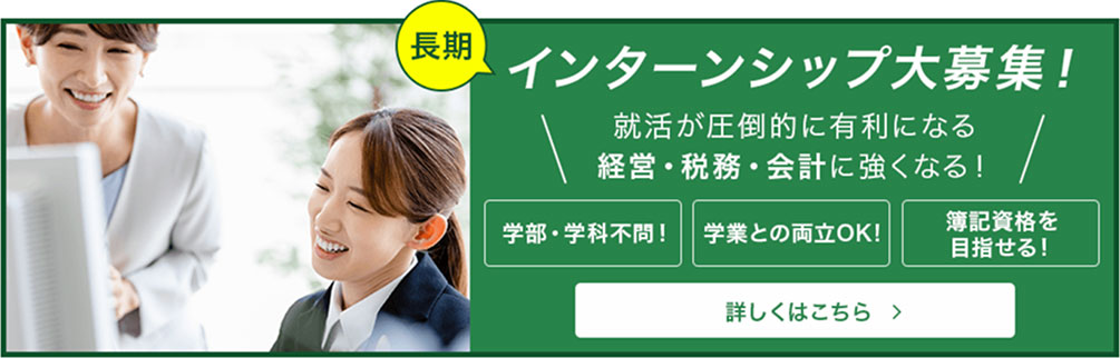 企業の経営に「お金」の管理・運用は必要不可欠。当社は、会社のお金にまつわる部分のサポートをメインに、経営コンサルティングや起業家サポートなどを展開しています。インターンをとおして、企業経営・会計の専門知識を学ぶことで他の人にはない”あなただけの強み”を身につけることができます!(税理士・簿記資格取得を目指している人も大歓迎です!)